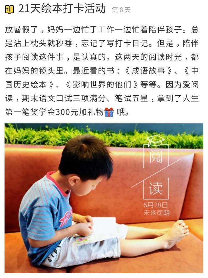 比如爸妈营社区@兔小佳的孩子,因为爱阅读,期末考试还拿到了人生中第一笔300元奖学金!