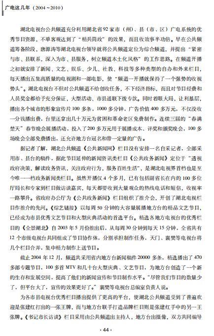 过去20余年中,公共频道作为主办和插播节目的各级播出机构的共用频道,供辖区内县级台在预留时段内插播当地节目。在推动市(地)、县(市)广播电视播出机构职能转变,做好基层覆盖和规范宣传秩序等方面发挥了重要作用。当前,媒体深度融合正在推进,广电总局出台政策,推动改革创新,为基层广电发展注入新活力新动能。