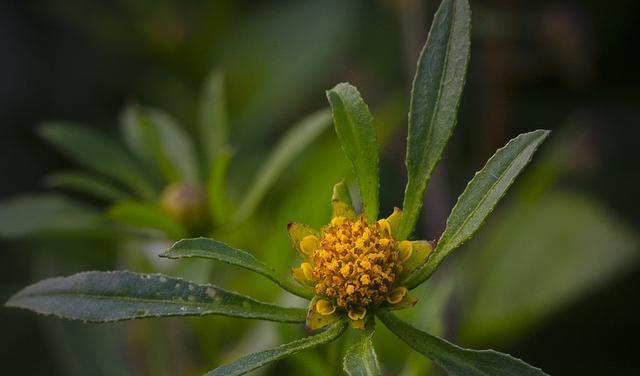 从外形上来看,大狼杷草显得十分高大,一般都在60-120厘米之间,几乎到了成年人的腰部。它的茎干为直立状态,挺拔而坚韧,上端是灰绿色,下端是紫褐色,看上去显得有些另类。它的叶子为披针形,瘦长纤弱,色泽浓绿,虽然不是很茂密,却透出了浓浓的生机与活力。除此之外,大狼杷草的花朵也很有特点,花型丰满,色泽橙黄,在花瓣的外侧,还生长着一排细长的苞片,看上去轻灵秀雅,别有一番韵味。