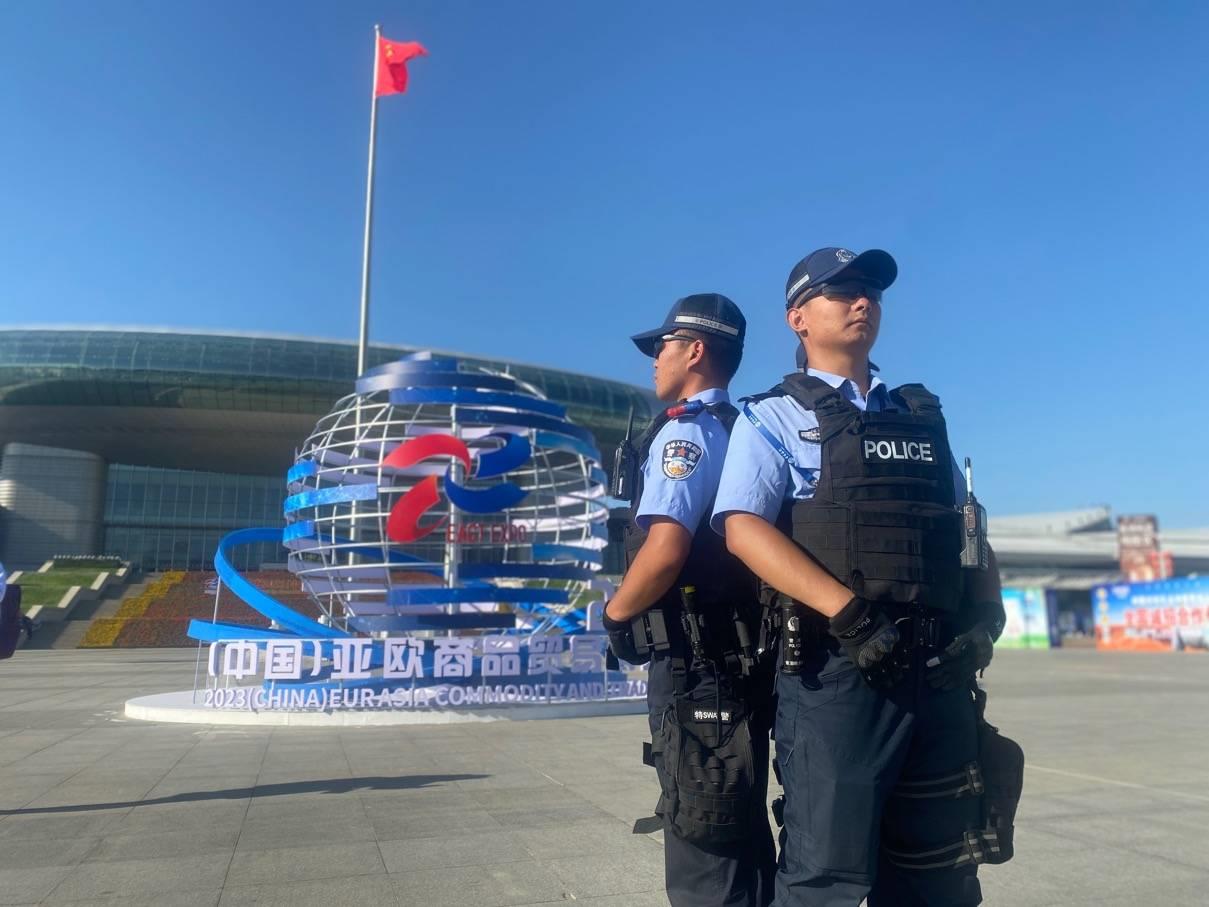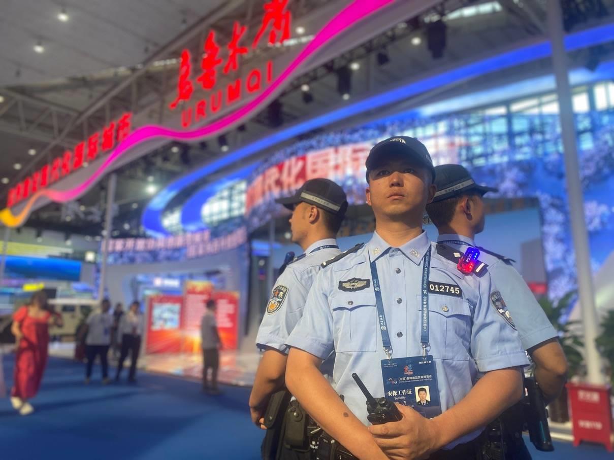 在第七届亚欧商品博览会的现场,特警七支队设立了党员先锋岗、便民服务站,在博览会中为群众排忧解难。