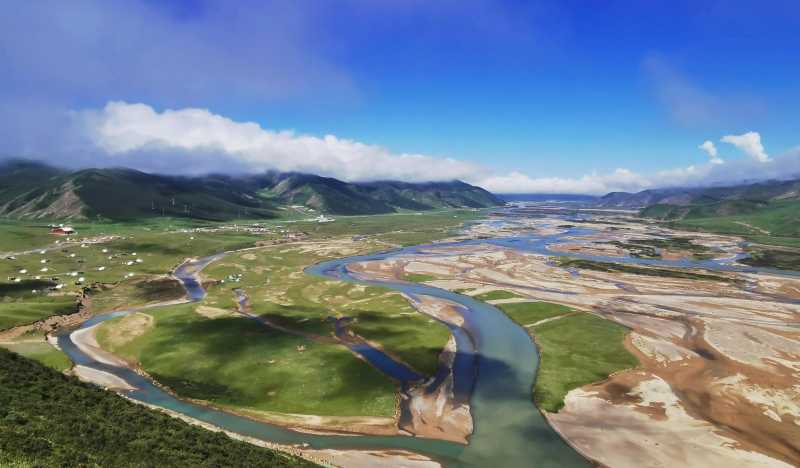 三江源地区地下多冻土分布,使得地表多湿地沼泽分布,涓涓细流汇聚成小河,众多小河形成辫状水系,才逐渐汇流成了大江大河。黄河发源于巴颜克拉山以北,长江发源于巴颜克拉山以南,澜沧江发源于