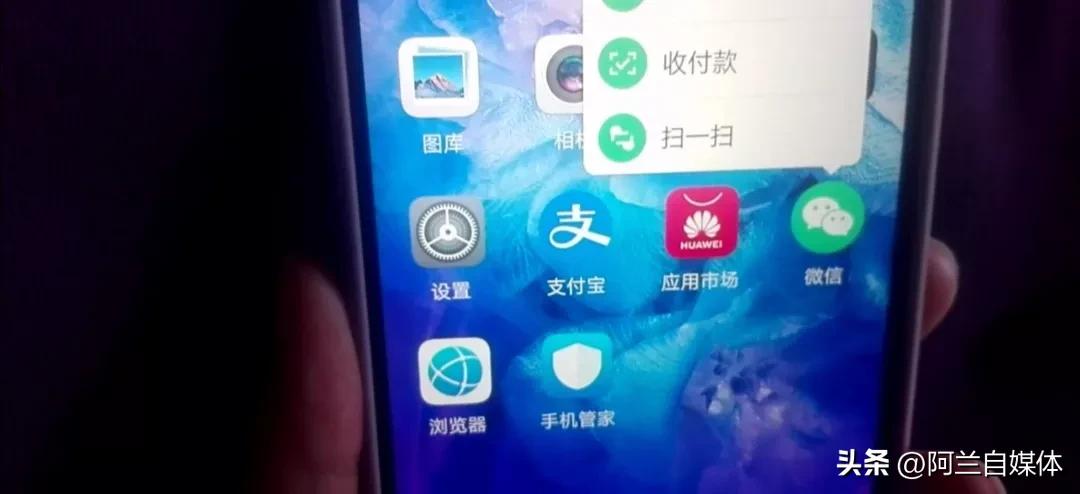 在这里想用手机微信扫一扫的话,我们不需要打开微信的,我们直接用手指长按两秒,注意看下面立刻出现了扫一扫!