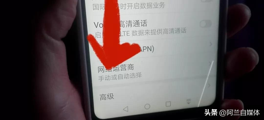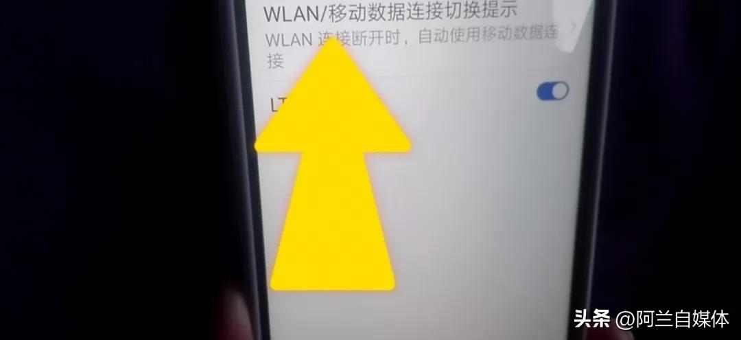 我们把这个移动网络点开往上滑,注意看最下方有一个“高级”,我们再把高级打开,在这里我们注意看上方有一个“WiFi移动数据连接切换提示”!