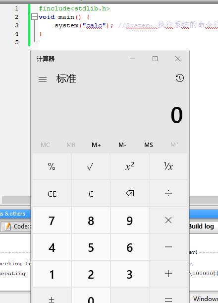 然后 system("calc");是调用系统命令,读者也可以尝试下吧calc换成别的代码,比如notepad。