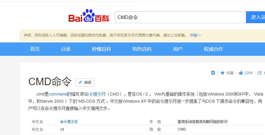 首先,cmd指令是啥,读者可以参考百度百科: