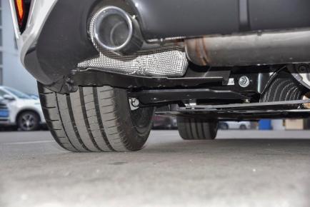 车尾,两侧尾灯组狭长而锐利,与车身融合在一起,比较动感。双边共双出的排气孔,搭配硕大的扩散器,进一步为车辆增添了动感属性。