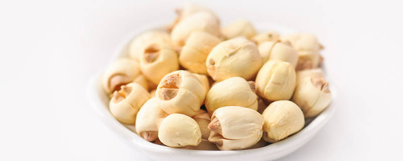 我们可以将干莲子用水泡软,用小刀或剪刀在莲子中间横划一圈,使莲子壳上出现清晰刀迹,然后掰开壳,取出整颗莲子,再用一根牙签穿过莲子中心带出莲子芯。