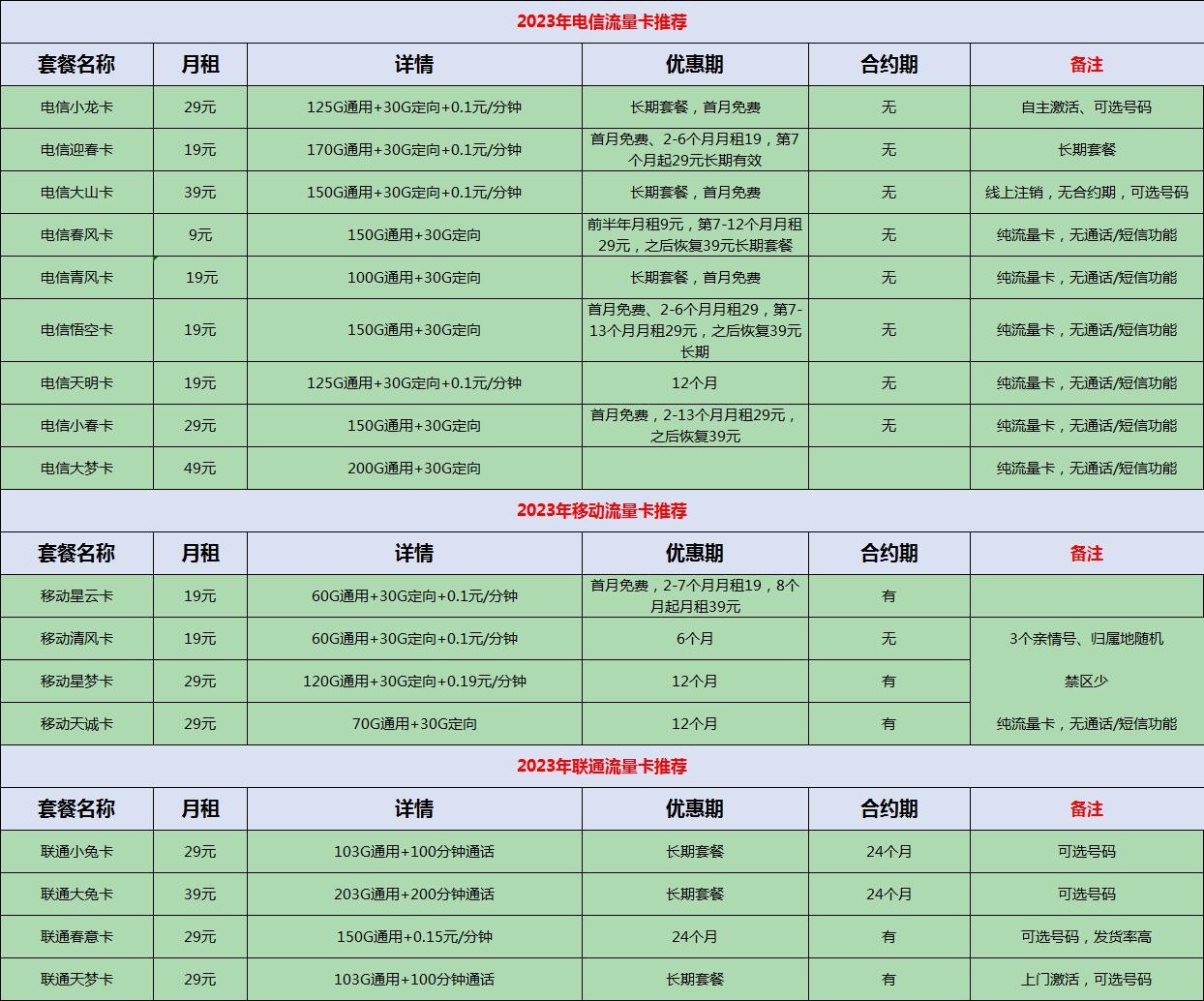 三大运营商流量卡选哪个?最新套餐对比图出炉,看完秒懂!