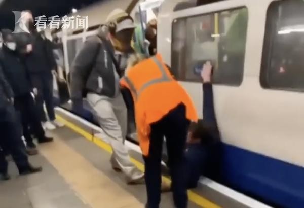 英国男子撒酒疯打骂乘客 又跳下站台被死死卡住