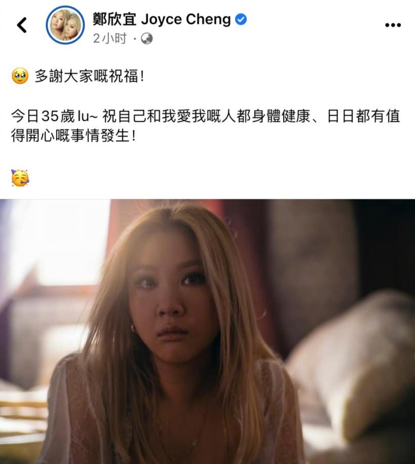 5月30日,郑欣宜也在这叫平台上发文晒照,表示今天是她35岁生日,并谢谢所有人的祝福,她还在文中表示,祝愿自己和亲人都身体健康,日日都有值得开心的事情发生!