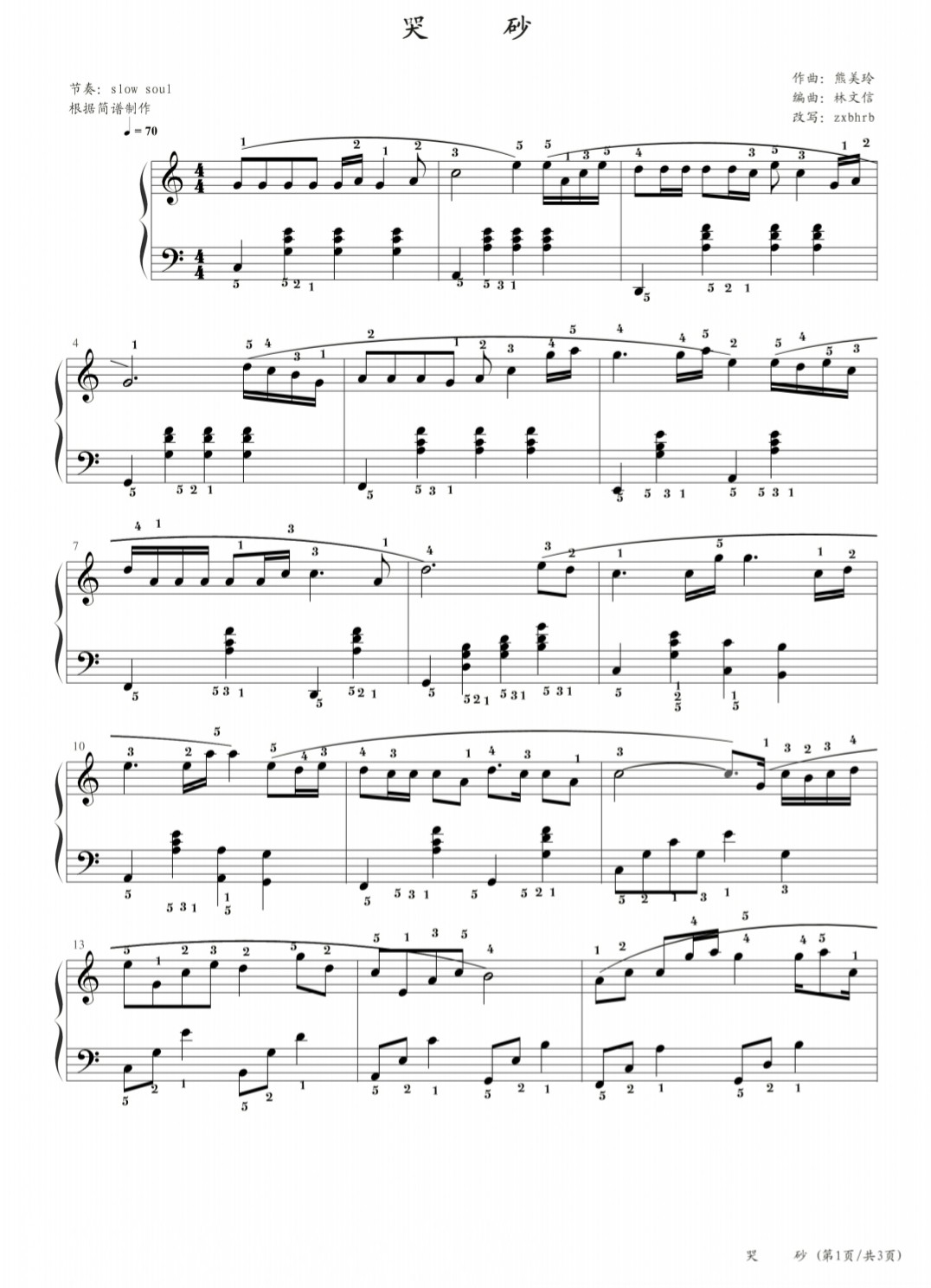 哭砂,钢琴谱,黄莺莺,曲谱分享