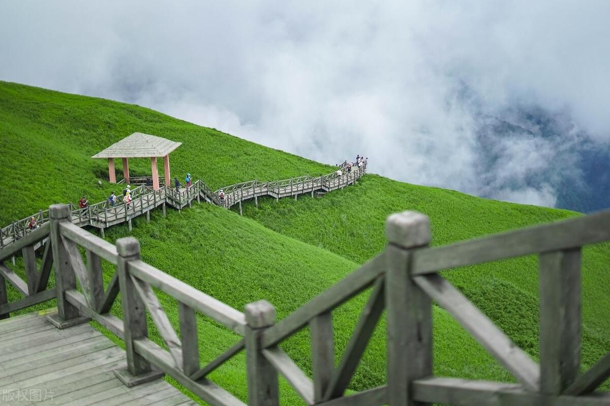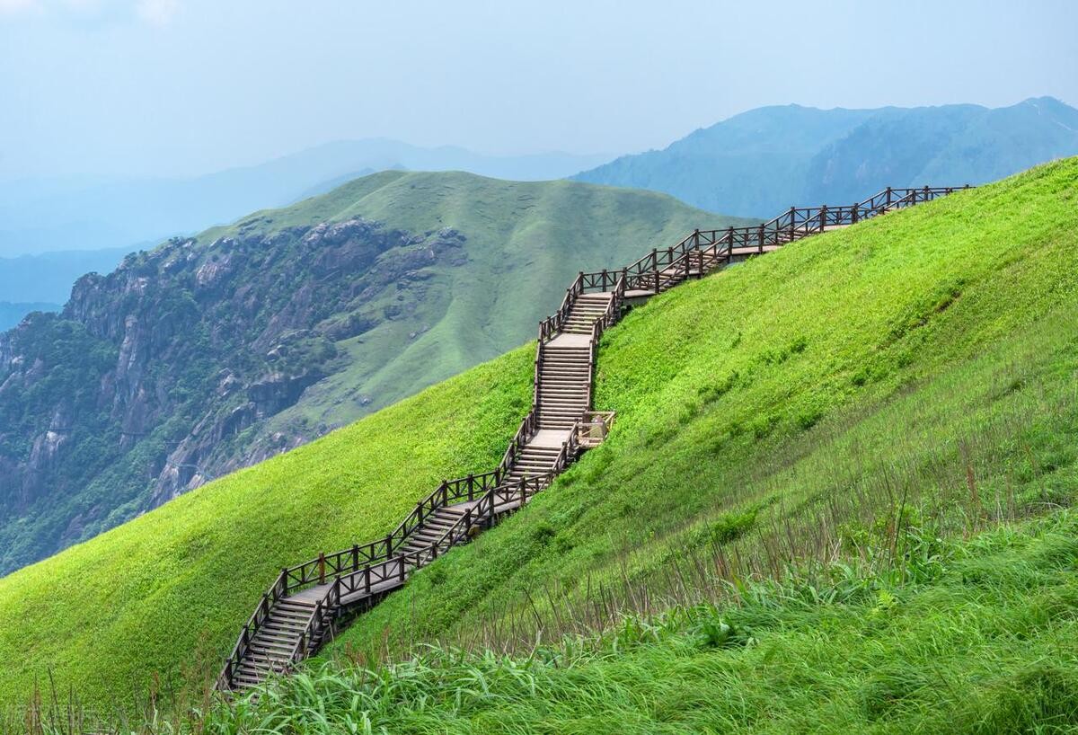 武功山,以其高山草甸和云海日出而著名。游客可以沿着山路攀登,欣赏到武功山的壮丽风光,也可以在山顶的草甸上露营,感受大自然的神秘和魅力。
