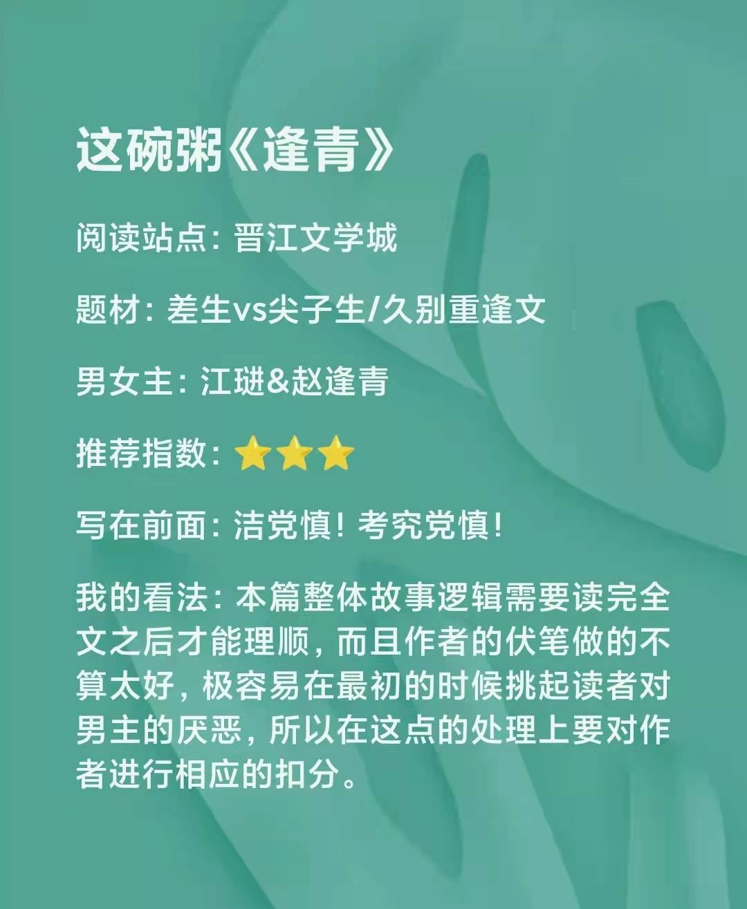 这碗粥作品《逢青》:尖子生vs差生,白切黑男主