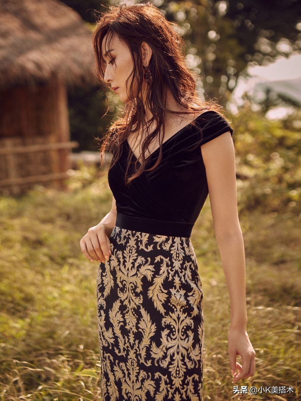 不得不说,胡静的身材保持得实在是太好了!这一件抹胸长裙同样也是十分修身的设计,不过搭配了褶皱式的剪裁,看上去比较考验身材,不过胡静依旧驾驭得非常好。抹胸搭配湿发,性感的锁骨和立体的肩部线条若隐若现,更加性感迷人了!