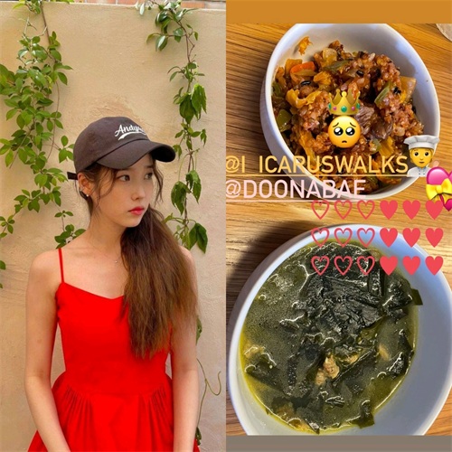 虽然一直像和粉丝们约定的那样,像牛一样工作着,但IU这次29的生日,也托裴斗娜和李珠英的福,吃到了美味的生日海带汤和泡菜炒饭。