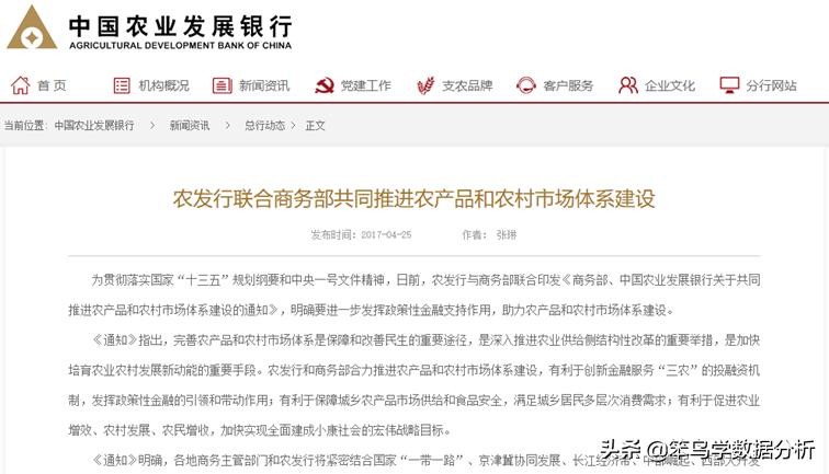 首先看政治环境,对于生鲜行业来说,国家大力发展农业,鼓励农产品在线交易,2017年,商务部发布《中国农业发展银行关于共同推进农产品和农村市场体系建设的通知》,鼓励发展农村市场体系。