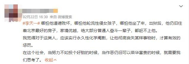 有人却无法原谅李天一的所作所为,并表示受伤的是被他侵犯的女孩子,其他人无法替她原谅李天一,因为没有人经历过那个女孩的人生与折磨。