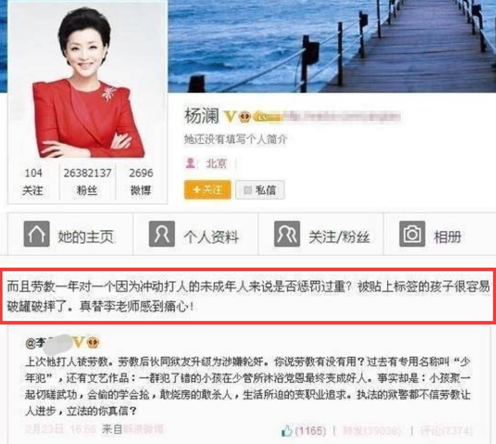 此事还波及到了一位优秀的主持人,也就是杨澜,当年李天一因为打架被送进去教育了一年,杨澜表示:劳教一年对于未成年人来说是否惩罚过重?被贴上标签的孩子很容易破罐破摔。