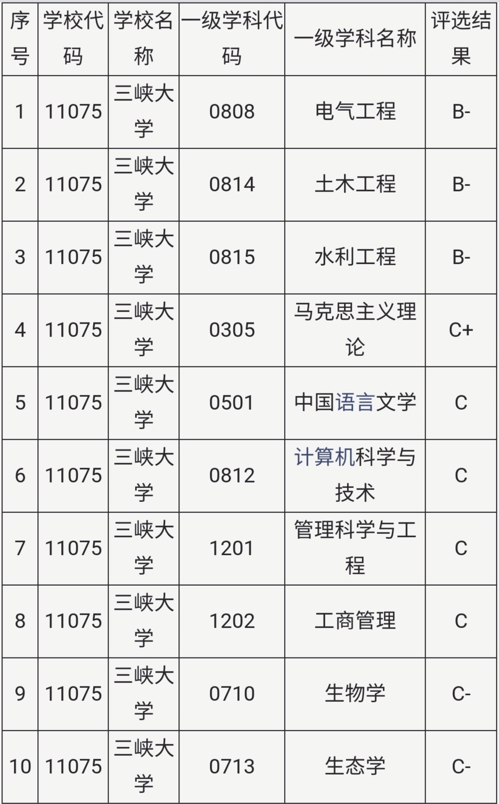 有人可能说,三峡大学有什么专业比较好?为什么三峡大学的专业分数线这么高?通过展示三峡大学的部分专业也可以略知一二,三峡大学的第四轮学科评估显示,电气工程、土木工程、水利工程都是B-,马克思主义理论C+,一共有七个C级学科上榜。