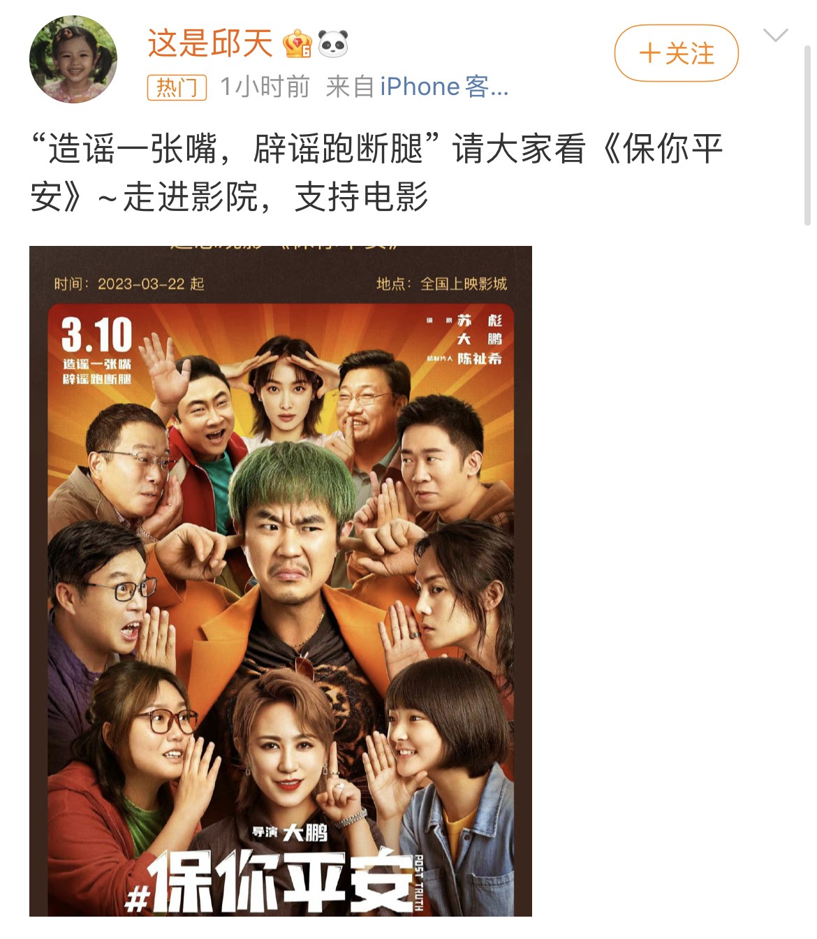 关于董子健邱天的绯闻,女方这边,也是做了明确的澄清。“造谣一张嘴,辟谣跑断腿。请大家看《保你平安》~走进影院,支持电影。”邱天在辟谣的同时还顺便宣传了电影哈哈哈。粉丝在评论区留言,让邱天好好搞事业。