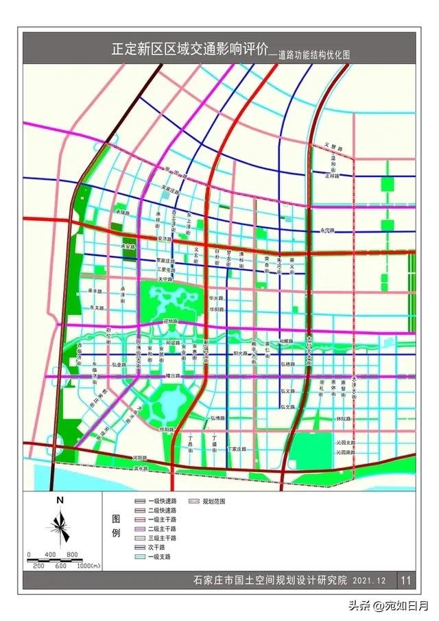 正定新区参照主城区街路名称现状,确定了街路名称整体框架:东西为路,南北为街或大街。街道按实际宽幅分主、次、支三级。街路名称布局,体现“历史与地理相融,时间与空间相融,人与自然相融”的“和为贵”理念。