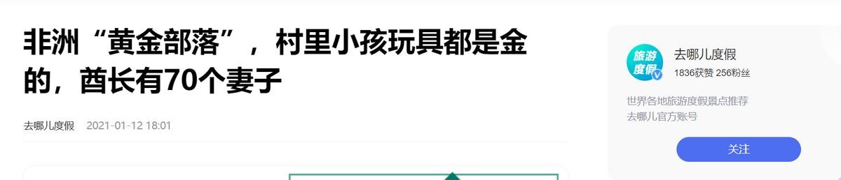 非洲“黄金部落”,村里小孩玩具都是金的,酋长有70个妻子——去哪儿度假