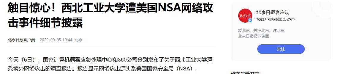 北京日报客户端-触目惊心!西北工业大学遭美国NSA网络攻击事件细节披露