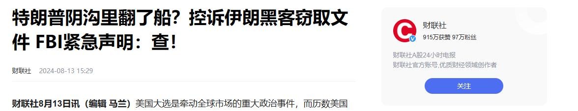 财联社-特朗普阴沟里翻了船?控诉伊朗黑客窃取文件 FBI紧急声明:查!