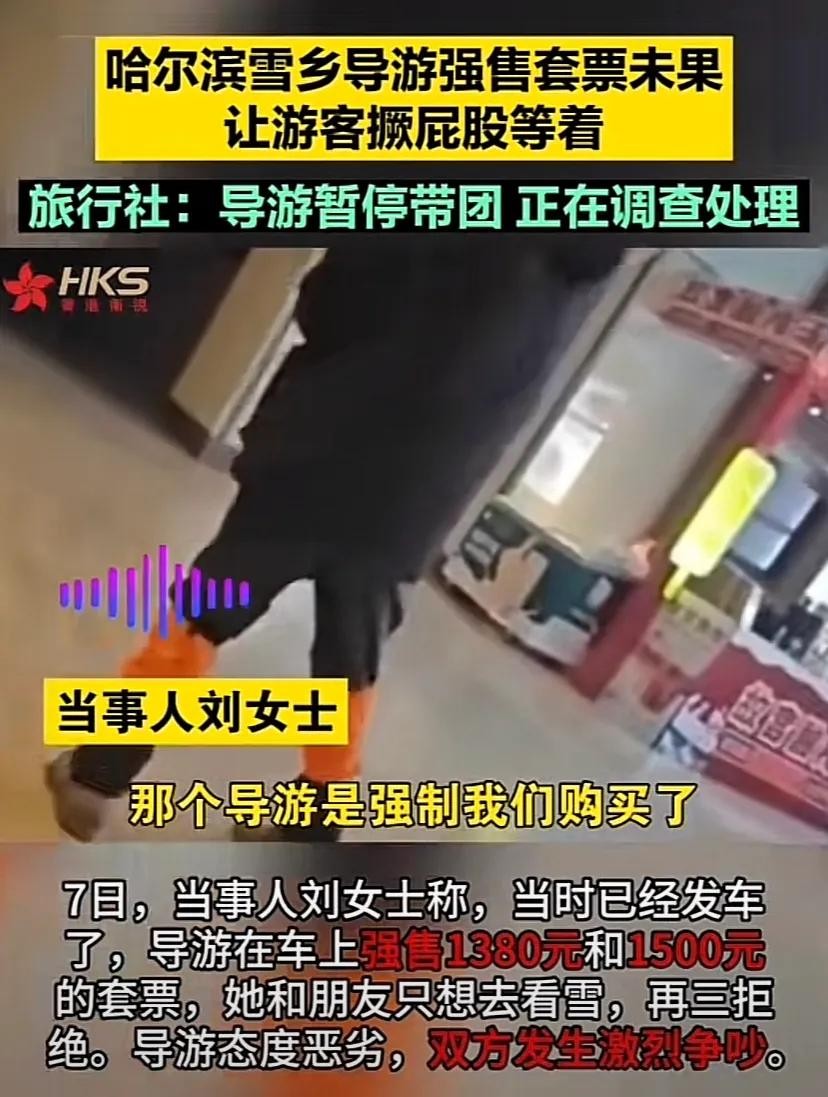 1月5日,一女性游客爆料称花费358元参加了黑龙江哈尔滨雪乡两日游,却遭遇导游强行推销高价套票,导致尴尬局面。7日,当事人刘女士指出,事件发生时已经发车,导游在车上多次强行推销价值1380元和1500元的套票,她和朋友仅想欣赏雪景,多次拒绝导游的推销。导游态度极为恶劣,引发双方激烈争执。涉事导游和旅行社回应称,游客先行辱骂,导游因此暂停带团,文旅局正在进行调查处理。尚志市文旅局工作人员表示,目前正积极调查中,将尽快给予游客答复。