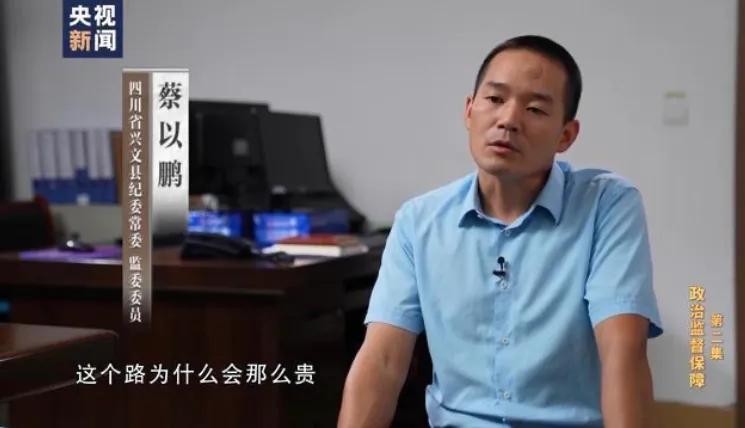 蔡以鹏,兴文县纪委常委、监委委员,表示在对一条村路硬化项目的调查中,村民提出了疑问,质疑该路的高造价。实地核查发现,虽然预算较高,但路面质量不符合项目要求,揭示吴小龙与项目承包商的关系。