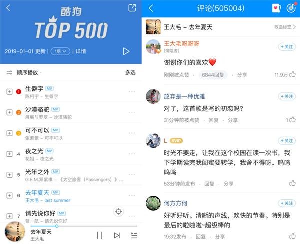 刚一出道,新歌《去年夏天》就喜提酷狗TOP500榜单前十,累积表白超过50万,除了清新的邻家萌妹王大毛,华语乐坛应该找不到第二个这么666的新生代歌手了!