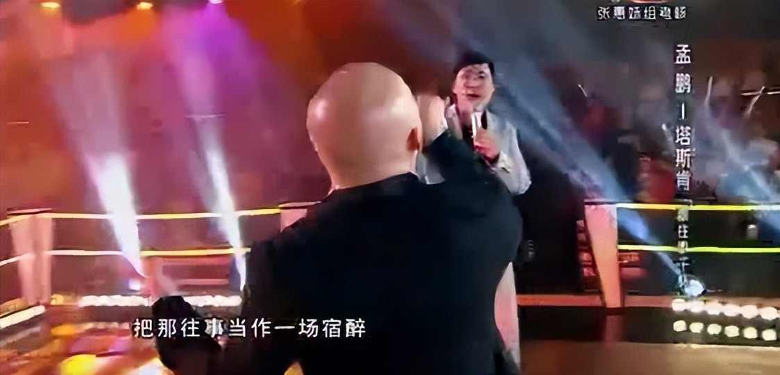 2013年,也就是整整十年前的《中国好声音》,张惠妹组的塔斯肯和孟鹏同唱《跟往事干杯》,虽然孟鹏输了,但他也让这场Batlle成为名场面。