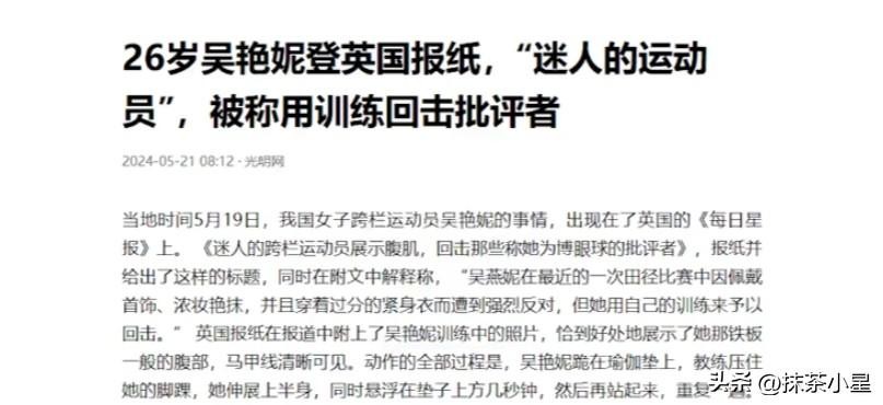 在速度的赛道上创造奇迹的同时,吴艳妮的个人魅力也在国际媒体上得到了展示。英国《每日星报》的大篇幅报道赞誉她为“中国顶级跨栏运动员”,并针对外界的质疑,她以坚强的姿态和出色的表现进行了有力的回击。文章中提到,吴艳妮不仅在田径场上以速度征服世界,她的个性和风格也使她成为了一个不可多得的运动明星。