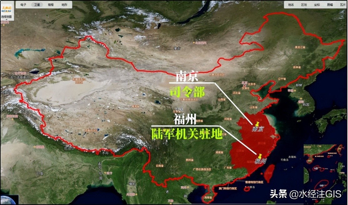 与原南京军区辖区相同,加上军区内的东海舰队、空军、火箭军、武警,司令部驻南京,陆军机关驻福州,领导和指挥江苏、浙江、安徽、福建、江西五省和上海市的所属武装力量。