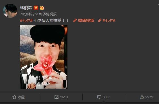 林俊杰晒出一段小视频,嘴刁红花送粉丝七夕祝福。