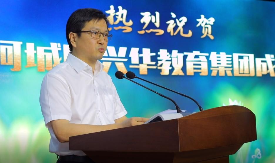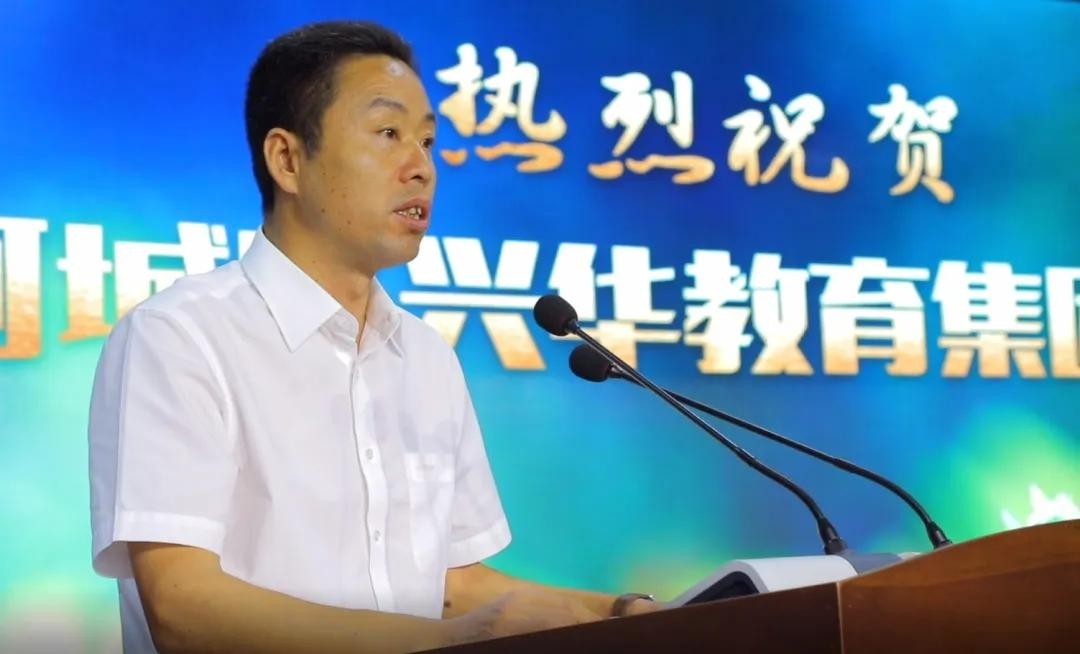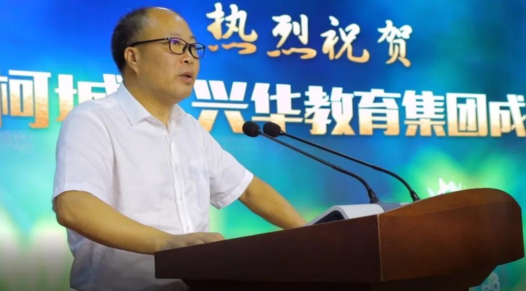 衢州市教育局党委委员、副局长姚文湧对集团的成立表示热烈的祝贺,并作重要讲话。他表示:兴华教育集团的成立对推动市区教育生态可持续发展、提升我市区域教育治理效能和满足我市人民对优质教育资源的新需求有着重大意义。姚文湧对集团发展提出三点要求:一是要以科学的态度评估集团母体。要做实做细前期工作,对母体的管理机制、师资力量、学科水平等等进行一个科学、全面评估,以便有的放矢、夯实基础。二是深入研究、挖掘集团母体“动力源”。要围绕激发内生动力,紧紧依托优秀教师、高质量课程等教育资源,借助互联网等技术手段,建立一套行之有效的智能化管理体系,丰富集团化办学内涵,提高教育教学质量。三是为提升全市教育水平迈出“柯城步伐”。要尽早完善兴华教育集团的管理架构,形成一套行之有效的标准体系,以高质量、高水平发展为目标,努力办出“柯城样本”,为推动全市教育水平迈出“柯城步伐”。