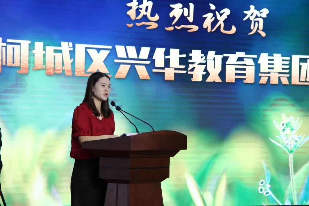 区人民政府副区长吴伟红对柯城区兴华教育集团的成立表示祝贺并发表致辞。吴伟红指出:“近年来,我区围绕‘教育公平’‘优质均衡’‘人民满意’等核心目标不断探索和实践,着力解决区域教育发展不均衡问题,兴华教育集团成立便是其中一项重要举措。”