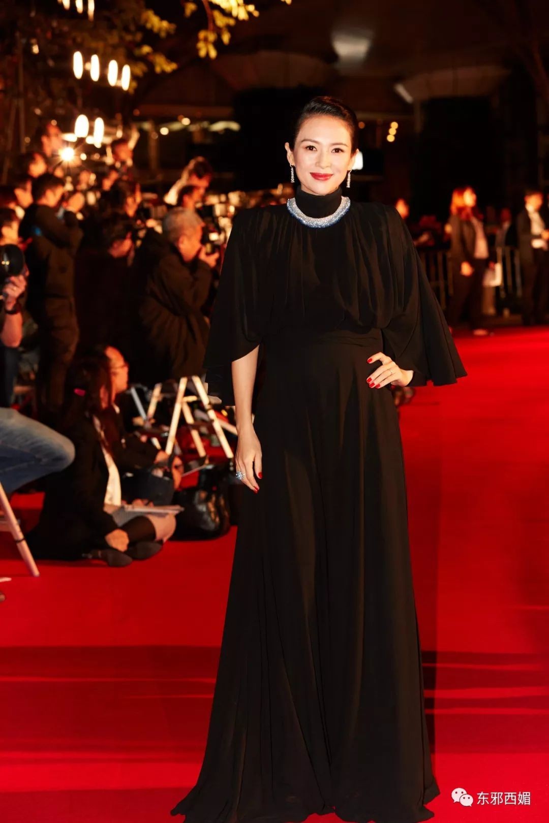 已经怀孕7个多月的章子怡,跟评审团成员一起上台亮相的这张合影上,简直看不出来怀孕!