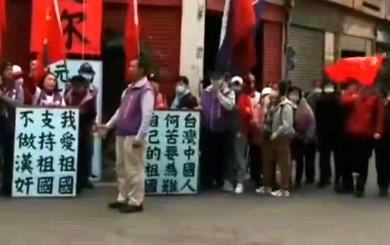 还记得,1月1日,岛内反对蔡英文的社会团体“全民拔菜总部”在台北街头组织活动——他们将“祖国母亲我爱你”的条幅高高挂起,并现场升起五星红旗高唱国歌。