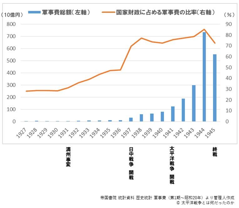 1931年九一八是事变以前,军费占日本国家财政的30%。九一八事变后,日本军费迅猛增长。到了1937年,军费占到了日本国家财政的70%。这个比例一直持续到太平洋战争。太平洋战争期间,军费占到了日本国家财政的85%。可以说日本几乎把所有的钱都用在了战争上,如此穷兵黩武,岂能不败?