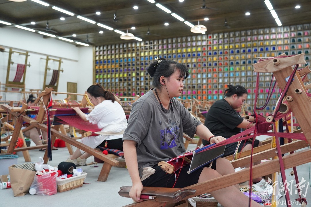 来索溪峪,看一眼传承三千年的古老技艺。土家织锦被称为“高度浓缩的民族文化”,属于国家级非物质文化遗产。今年7月,喻家嘴社区“妈妈工厂示范基地”揭牌,“妈妈公寓”、“妈妈教室”灵活管理,有效解决了农村妇女就业、留守儿童教育、非遗传承等问题。随着乖幺妹土家织锦项目在街道建设新的对外展示基地和加工车间,进一步推动文旅深度融合发展,为街道创建省级特色产业小镇打下坚实的基础。