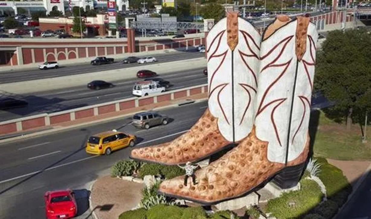 图中这个男子为了创造世界纪录,在广场里打造了一个10.4米的牛仔靴。