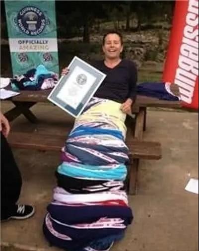 一个无聊的美国人,竟然可以挑战同时穿最多的内裤,他居然穿了266条,也可见他是够闲的。