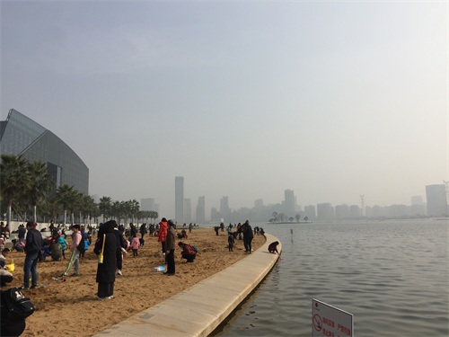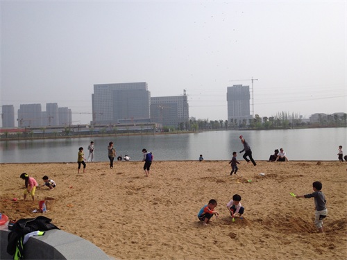 金沙湖最有特色的恐怕就是那片洋溢着热带风情金黄的沙滩,再配上那些高大的棕榈树,难怪被人称为杭州小三亚,成了网红博主打卡地。这片沙滩周末天气好的时候经常挤满了人。细小柔软的沙子据说是从海南空运过来的,一脚踩上去,就像踩上了松软、舒服的地毯。沙滩上可以看到孩子们在搭城堡,在塔山头,在挖沙子,……沙滩永远是孩子们的yyds。