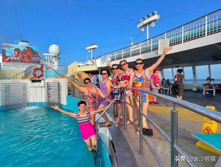 泳池合影。
