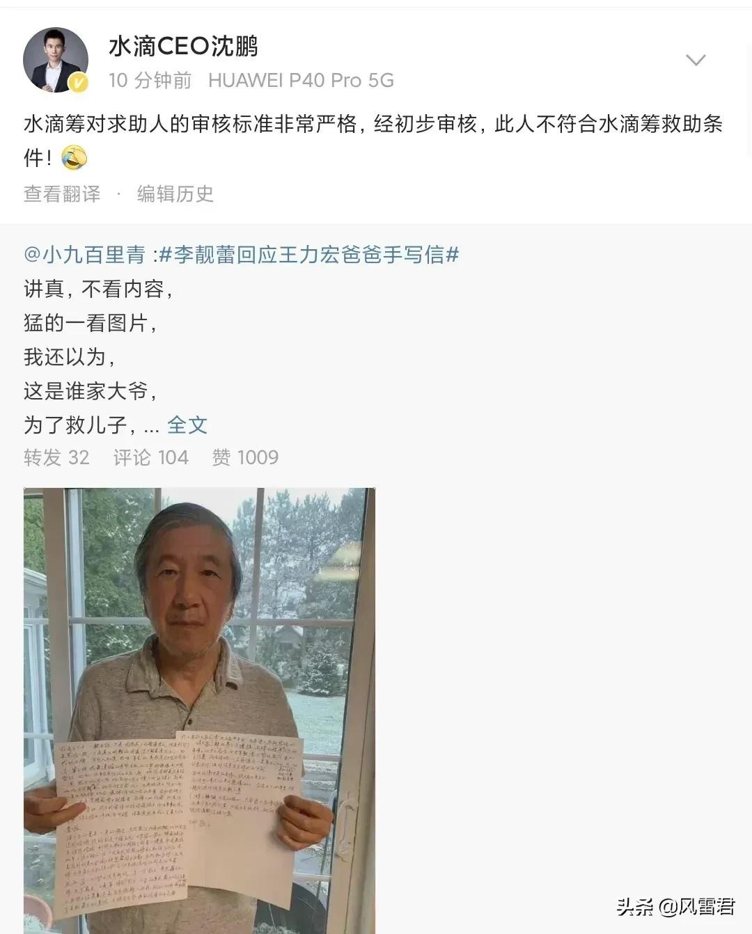 这条贴子被水滴筹CEO沈鹏转发并评论:
