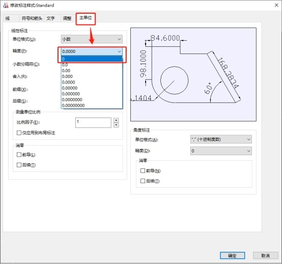 6.最后点击“主单位”这一栏将精度调整为“0”,随后点击右下角“确定”