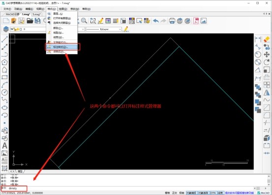 1.在上方找到“格式-标注样式”或者在命令行输入“dimsty”快捷键都可以打开“标注样式管理器”