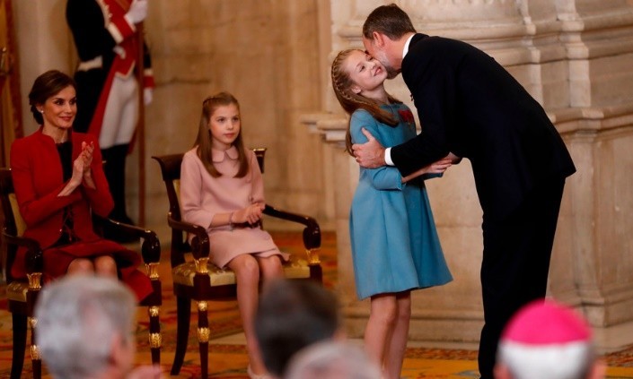 他在2018年初50岁生日之际,授予过莱昂诺尔金羊毛骑士勋章,在西班牙最新发行的硬币上印刷上了莱昂诺尔的头像,那一年的莱昂诺尔仅仅只有十三岁。
