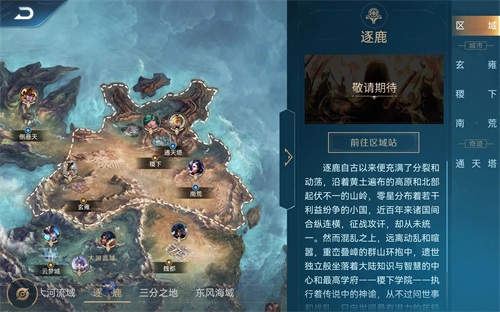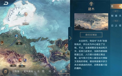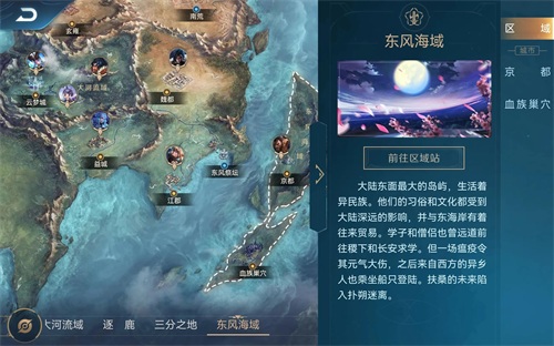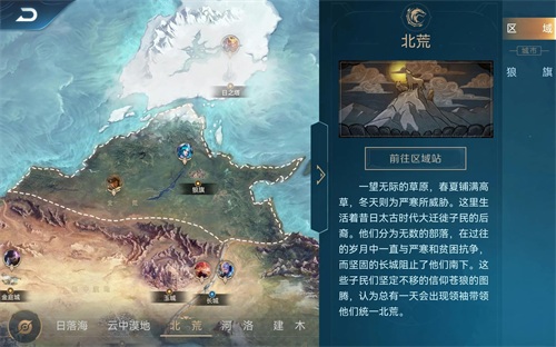 在王者大陆中,主要分成几块大区域:日落海、云中漠地、北荒、河洛、建木、大河流域、涿鹿、三分之地、东海流域。